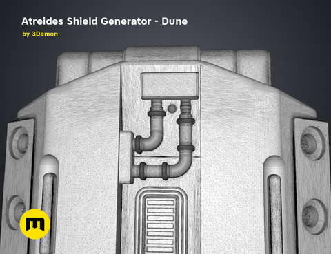 This is a digital 3D printable model of an Atreides Shield Generator from the movie Dune (2021).