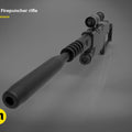 Files contain pieces of the rifle (STL) ready to be 3D printed on 200 x 200 x 200 mm 3D printers and 3D model files that are not cut into smaller pieces (OBJ).