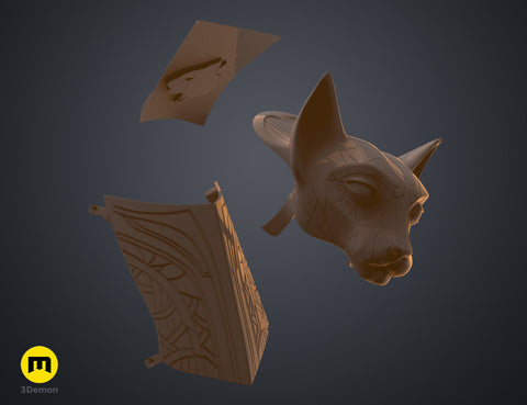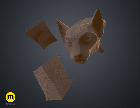 This model is a part of a wearable costume - a Bastet head, which can be attached to our helmet base. ( Same helmet base as our Abubis or Horus.)