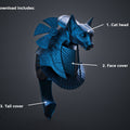 Files contain pieces of the cat head ready to be 3D printed on 200 x 200 mm printers (STL - cut into smaller pieces) and also uncut OBJ file. You need helmet base for the complete helmet.