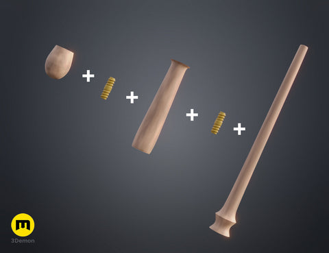 The files contain the whole wand + wand parts + connection screw in STL. This assembly system allows you to connect the wands without glue. It also allows you to customize your wand by mixing various wands and grips! You can buy additional grips on our website!