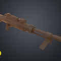 This is a digital 3D printable model of the Black Widow sniper rifle from Mass Effect 3 videogame.