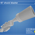 This model is a non-functional replica of a blaster. It's not meant as a weapon but as a cosplay accessory.