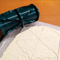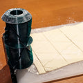 Instructions: Roll out the dough first, then imprint the Christmas tree texture. Finally, use the tree cutter roller to cut out the shapes and place them on the baking tray.