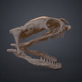 This is a digital 3D printable model of a king cobra (Ophiophagus hannah) skull. The snake skull model is based on a scan.