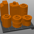 The download contains pieces of the blaster ready to be 3D printed on a 200 mm print bed and files that are not cut into smaller pieces. All cut parts are placed on the print bed as we would print them to save you time.