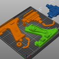 The download contains pieces of the blaster ready to be 3D printed on a 200 mm print bed and files that are not cut into smaller pieces. All cut parts are placed on the print bed as we would print them to save you time.