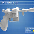 This model is a non-functional replica of a blaster. It's not meant as a weapon but as a cosplay accessory.