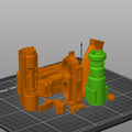 The download contains pieces of the blaster ready to be 3D printed on a 200 mm print bed and files that are not cut into smaller pieces. All cut parts are placed on the print bed as we would print them to save you time.