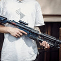 This model is a non-functional replica of a blaster. It's not meant as a weapon but as a cosplay accessory.
