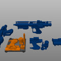The download contains pieces of the blaster ready to be 3D printed on a 200 mm print bed and files that are not cut into smaller pieces. All cut parts are placed on the print bed as we would print them to save you time.
