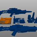The download contains pieces of the blaster ready to be 3D printed on a 200 mm print bed and files that are not cut into smaller pieces. All cut parts are placed on the print bed as we would print them to save you time.