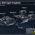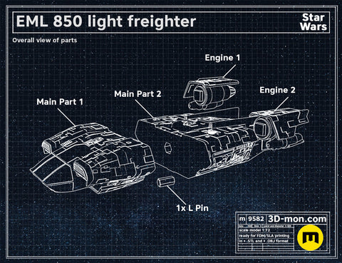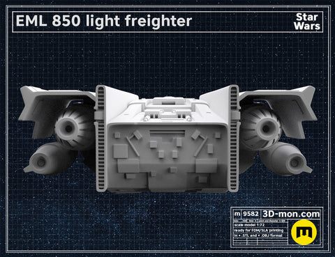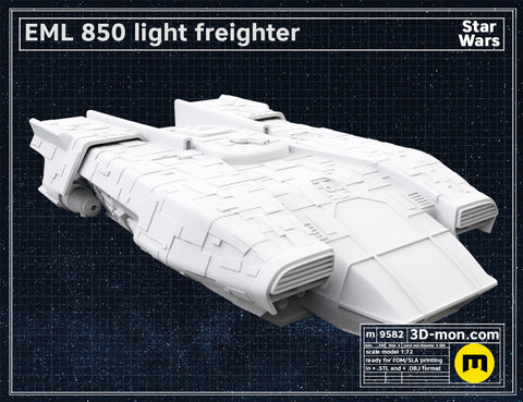 This is a digital 3D printable model of EML 850 light freighter - Kay Vess's Trailblazer ship from the Star Wars Universe.
