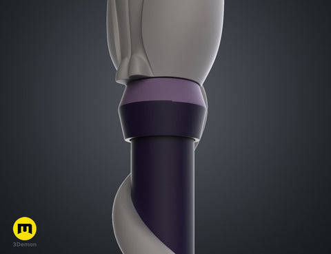 - If you print in PLA, you can heat the tail in warm water and it will be easier to bend it around the staff. :)