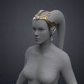 This is a digital 3D printable model of wearable Garsa Fwip’s Headpiece, from the Star Wars Book of Boba Fett.