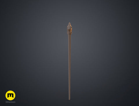 The files contain 2 versions of the staff. 70 cm and 113 cm long and are split among smaller printable parts which can be connected by hexagonal pegs.