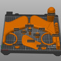 The download contains pieces of the blaster ready to be 3D printed on a 200 mm print bed and files that are not cut into smaller pieces. All cut parts are placed on the print bed as we would print them to save you time.