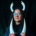 If you plan to wear it on a headband, try out our mounting pegs. These can be tied to your favorite headband without damaging it and work with all our horn designs!