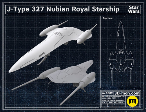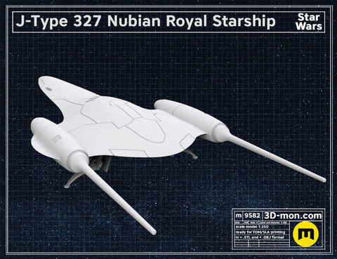 This is a digital 3D printable model of J-Type 327 Nubian Royal Starship from the Star Wars Universe.