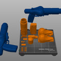 The download contains pieces of the blaster ready to be 3D printed on a 200 mm print bed and files that are not cut into smaller pieces. All cut parts are placed on the print bed as we would print them to save you time.