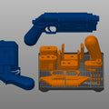The download contains pieces of the blaster ready to be 3D printed on a 200 mm print bed and files that are not cut into smaller pieces. All cut parts are placed on the print bed as we would print them to save you time.