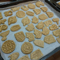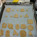 These models are cookie cutters to be 3D printed. The thickness of the wall is 1 mm and the offset of the imprint is 3 mm. You can scale it a bit down or up if you have a smaller nozzle or print them with one perimeter and also choose to stop the print sooner if you want to make very thin cookies with the imprint.