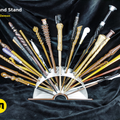 You can stack them together as you like. The stand pieces come in variations to hold 1-9 wands. To display more wands just glue more of the stands together. Each version of the stand is also available with optional wall mounting holes so you can put it on a shelf or directly screw it to the wall.