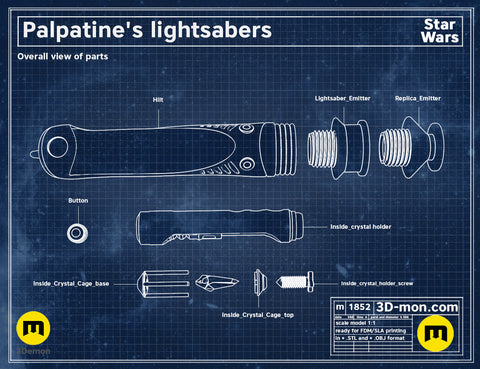 This is a digital 3D printable model of Palpatine lightsaber from the Star Wars Universe.
