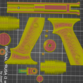 The download contains pieces of the blaster ready to be 3D printed on a 200 mm print bed and files that are not cut into smaller pieces. All cut parts are placed on the print bed as we would print them to save you time.