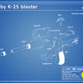 The STL files are named in the same way as the parts in blueprint pictures, so they could help you with assembling the blaster together.