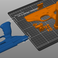 The download contains pieces of the blaster ready to be 3D printed on a 200 mm print bed and files that are not cut into smaller pieces. All cut parts are placed on the print bed as we would print them to save you time.