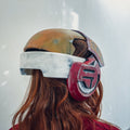 This is a digital 3D printable model of Sabine Wren's Speeder Helmet from The Star Wars: Ahsoka series.