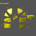 Helmet is sliced to parts as described on infographic + complete uncut helmet also included