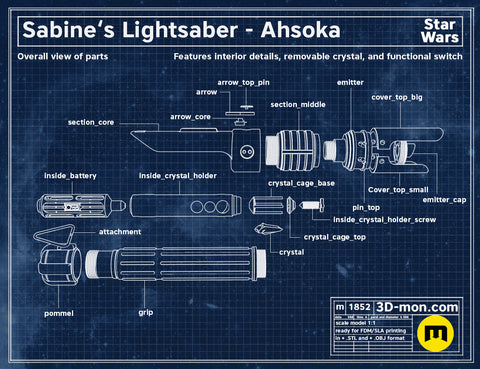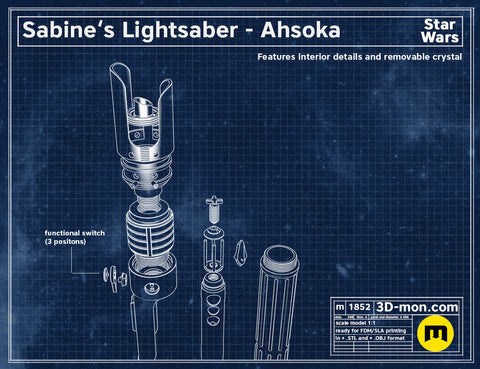 This is a digital 3D printable model of Sabine Wren's Lightsaber from the Star Wars live-action series: Ahsoka.