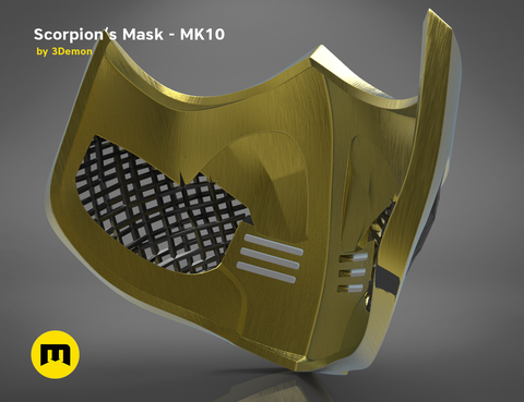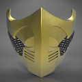 This 3D printable model is a Scorpion's Mask from Mortal Kombat.