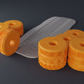 The download contains 17 OBJ files of wheels and a handle ready to be 3D printed. The wheels create various love patterns.