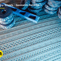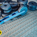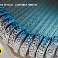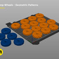 The download contains 19 OBJ files (reversed patterns included) of wheels and a handle ready to be 3D printed. The wheels create various geometric patterns.