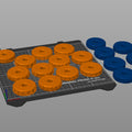 The download contains 18 OBJ files of wheels and a handle ready to be 3D printed. The wheels create various love patterns.