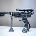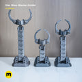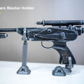 This is a digital 3D printable model of a custom holder/stand that is suited for our collection of Star Wars Blasters. We closely studied the aesthetics of individual objects from Star Wars and created this simple but efficient model based on those characteristics so it may fit well into the universe.