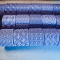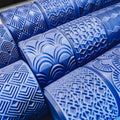 These digital 3D printable models of Stamp Wheels are meant to be used to create textures in clay and polymer clay, pottery clay, cake dough, fondant, fabric, and other materials. This wider Art Deco pattern set is great for creating patterns on fabric or fondant!
