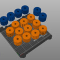 The download contains 17 OBJ files of wheels and a handle ready to be 3D printed. The wheels create various Art Deco patterns. .