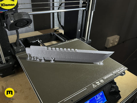 For parts that are tall but have a small base, we use a 10 mm brim for better bed adhesion.