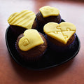 You can use the cutters for any creative project. I used them on marzipan to decorate cupcakes, and they looked wonderful – see for yourself! 🧁