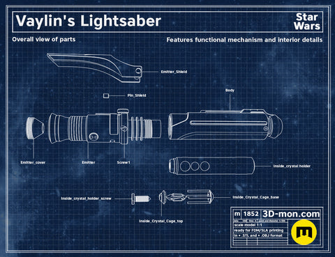 This is a digital 3D printable model of Vaylin lightsaber from the Star Wars Universe.
