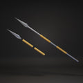 The spear is separated into pieces that fit onto a 200 mm print bed with holes inside prepared for insertion of a 10 mm carbon rod. Files for a custom spear with your own handle (3 cm diameter) are also included.
