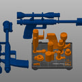 The download contains pieces of the blaster ready to be 3D printed on a 200 mm print bed and files that are not cut into smaller pieces. All cut parts are placed on the print bed as we would print them to save you time.