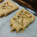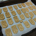 These models are cookie cutters to be 3D printed. The thickness of the wall is 1 mm and the offset of the imprint is 3 mm. You can scale it a bit down or up if you have a smaller nozzle or print them with one perimeter and also choose to stop the print sooner if you want to make very thin cookies with the imprint.