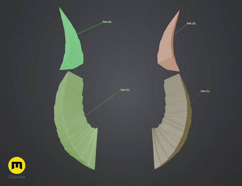 We recommend a layer height of 0.1 to 0.2 mm on FDM printers. All parts are aligned to the printing platform for easy manipulation. Most of the parts need minimal or no use of printing supports to save printing time and filament. For reliable printing, we also recommend setting a brim to the Horn, because of its height. It will ensure that the parts will not come off the printing platform during the printing process. Printing settings will vary greatly depending on your specific printer.