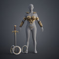 This is a digital 3D printable model of Xena's Armor and weapon from the Xena: Warrior Princess.