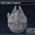 - The YT-1300 light freighter, also known as the YT-1300 Corellian freighter, was a type of light freighter manufactured by the Corellian Engineering Corporation that saw operation in the galaxy during the final days of the Galactic Republic and the reign of the Galactic Empire. By the year 0 BBY, it was considered an outdated model. The Millennium Falcon, a smuggling vessel that became part of the Rebel Alliance fleet, was a heavily modified YT-1300 of the YT-1300 f variety.